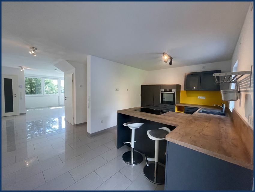 Im hinteren Bereich des Erdgeschosses liegt der Ess- und Kochbereich (ca. 16 m²), der den Mittelpunkt des Familienlebens bildet. Die moderne Einbauküche mit hochwertigen Geräten von NEFF ist funktional und ästhetisch zugleich.